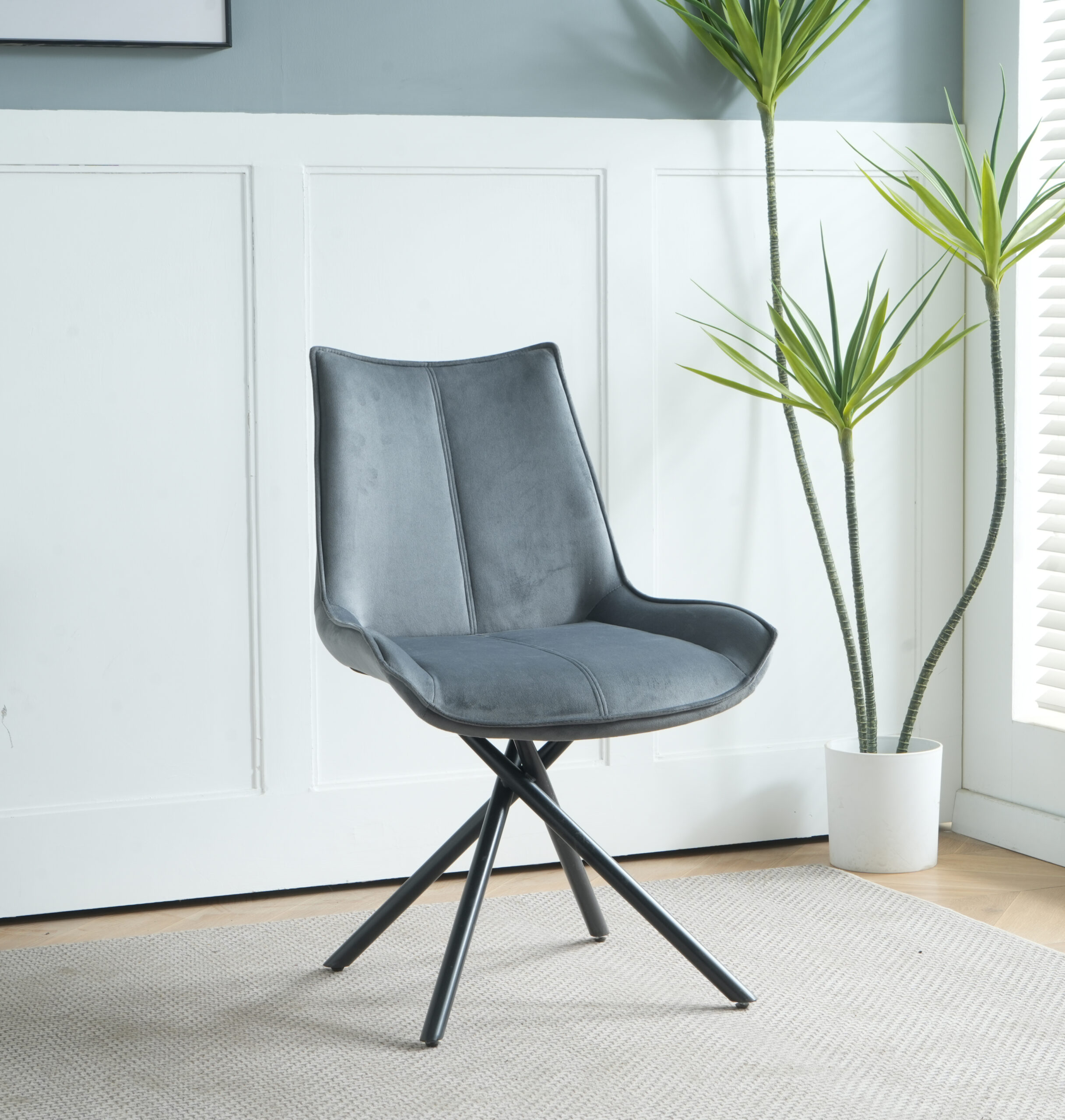 כיסא אוכל מעוצב בקווים מודרניים עם מושב מרופד ונוח, משענת גב תומכת ועיטור תפרים אלגנטי במרכז.