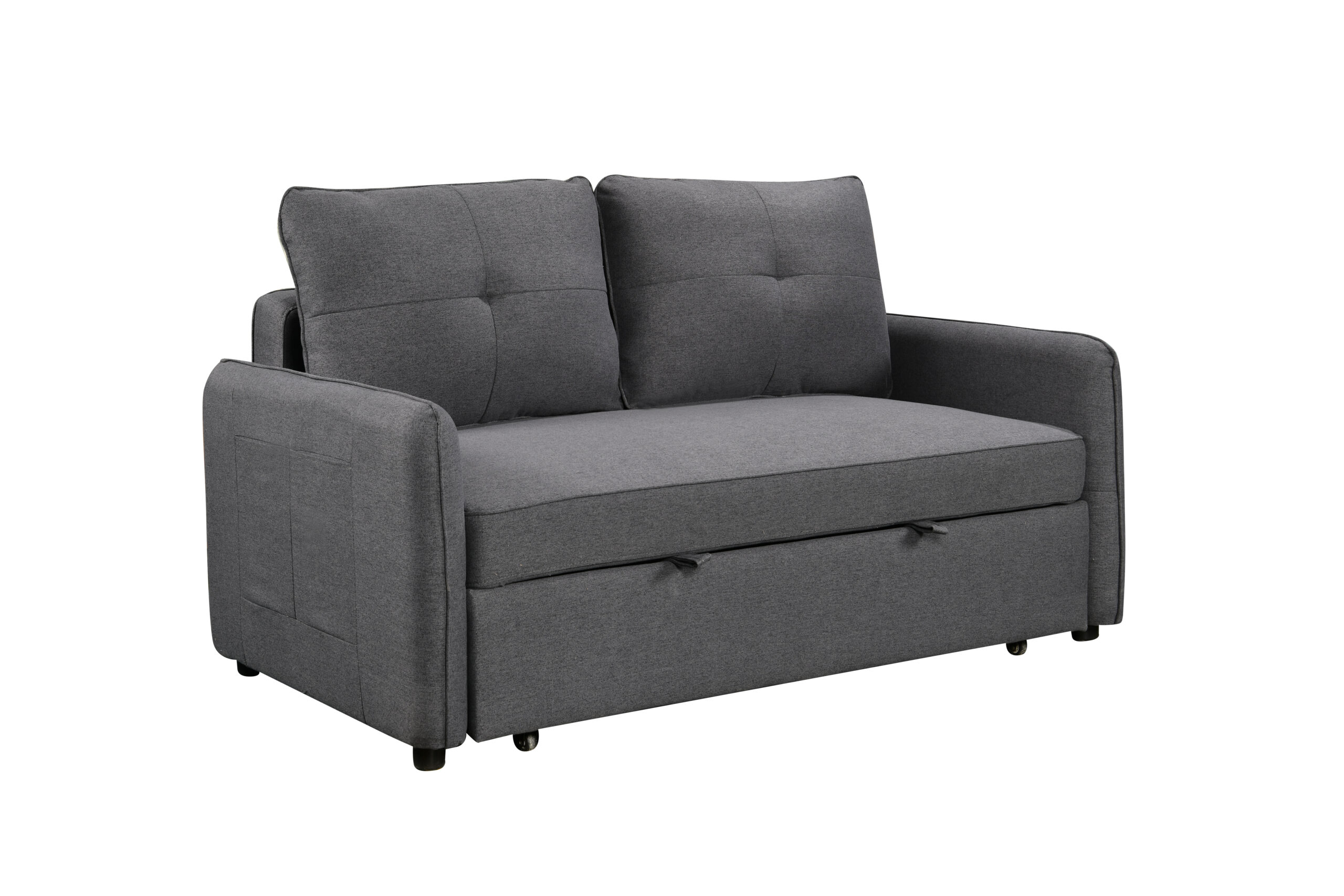 כורסה קומפקטית בעיצוב מודרני, נפתחת בקלות למיטת יחיד נוחה לאירוח.